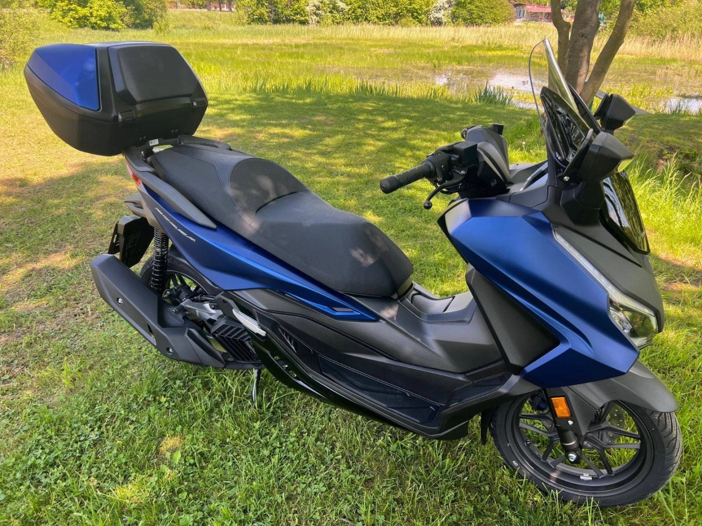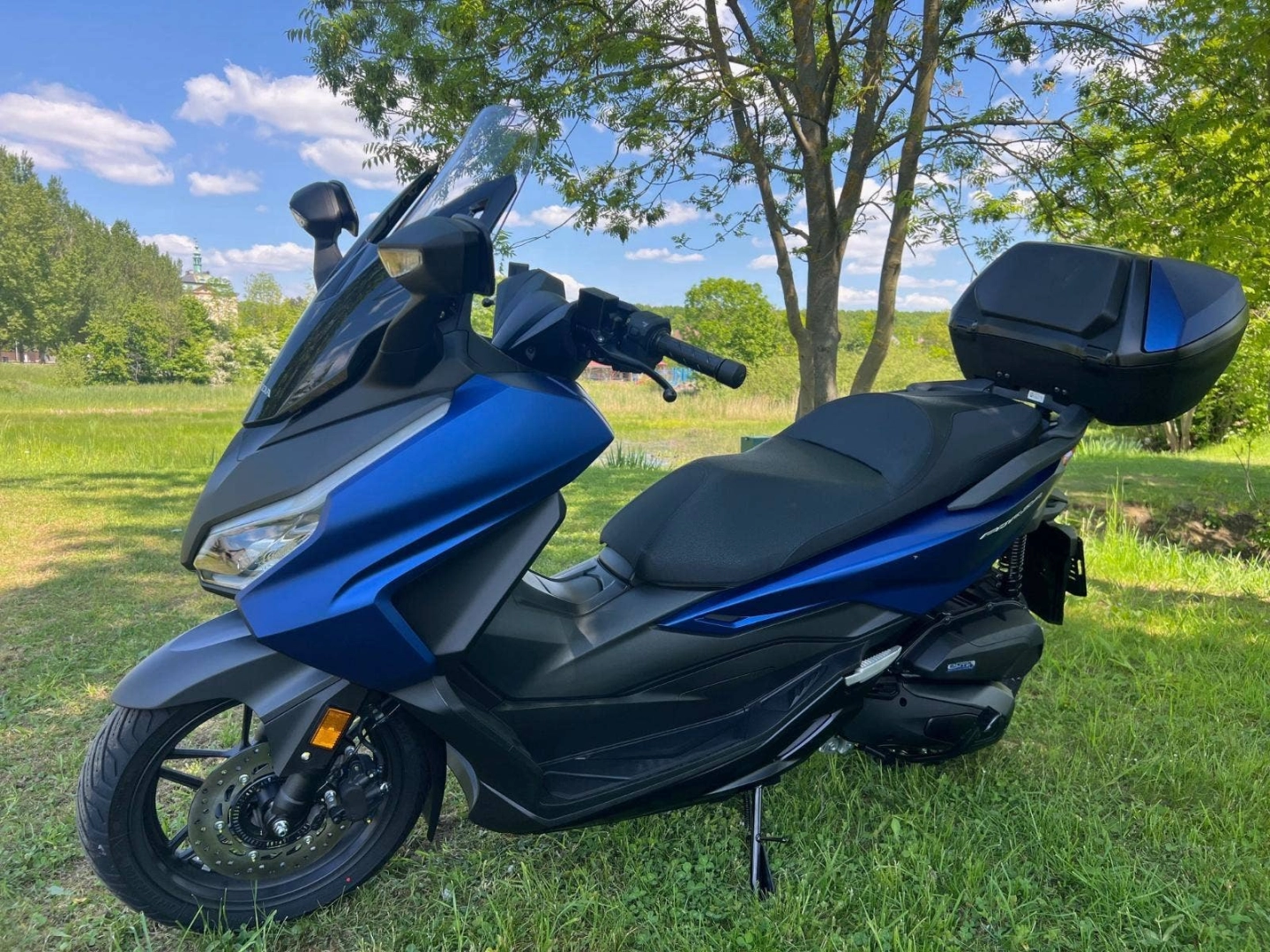 Forza 125 je špičkový sportovní skútr GT, který nabízí vše, co potřebujete, a ještě více. Zažijte vynikající spotřebu paliva a působivý dojezd motoru eSP+, který poskytuje nejlepší výkon ve své třídě. Model Forza 125 je vybaven 5palcovým TFT displejem s integrací aplikace Honda RoadSync a je stvořen pro život ve městě. Na skútru navrženém tak, aby držel krok s vaším městským životním stylem, můžete jednoduše vyřizovat telefonní hovory, poslouchat hudbu a používat navigaci, barva: černá matná, modrá matná, šedá.