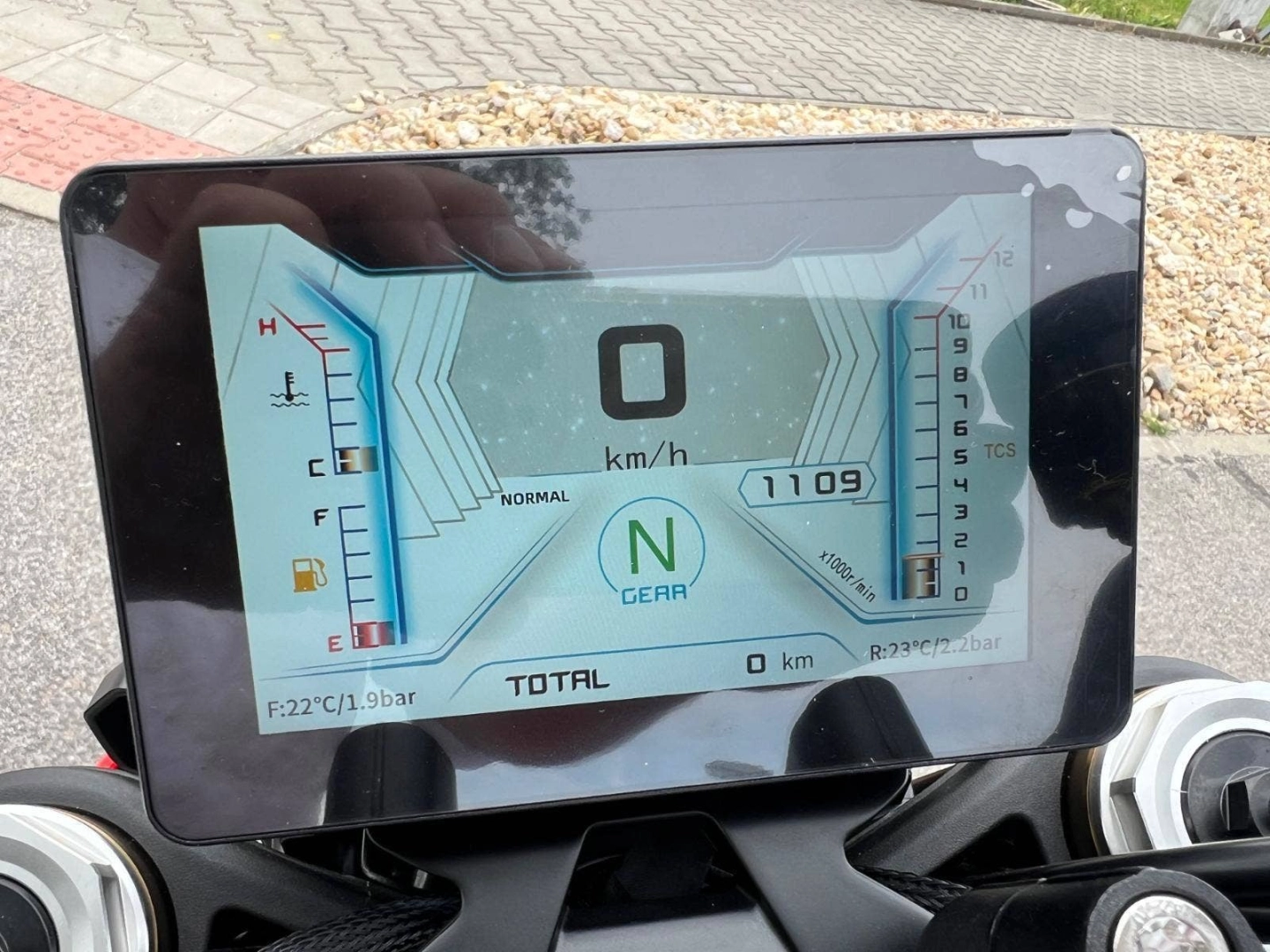 - Barevný TFT panel se senzory tlaku a teploty v pneumatikách