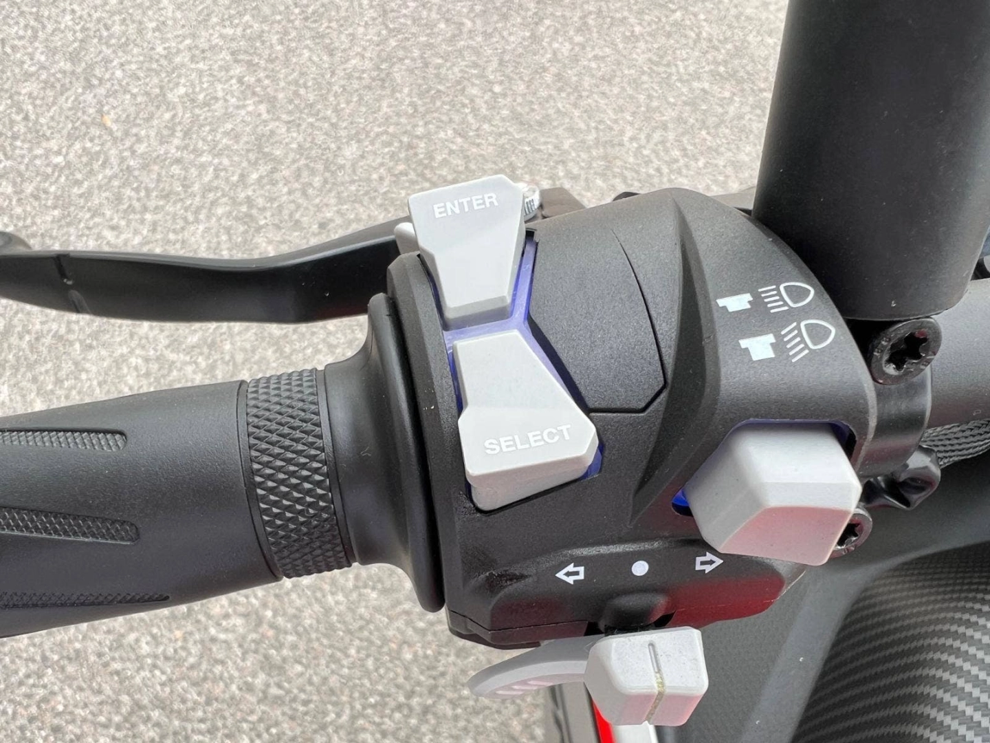 - Modře podsvícené ovladače na řídítkách