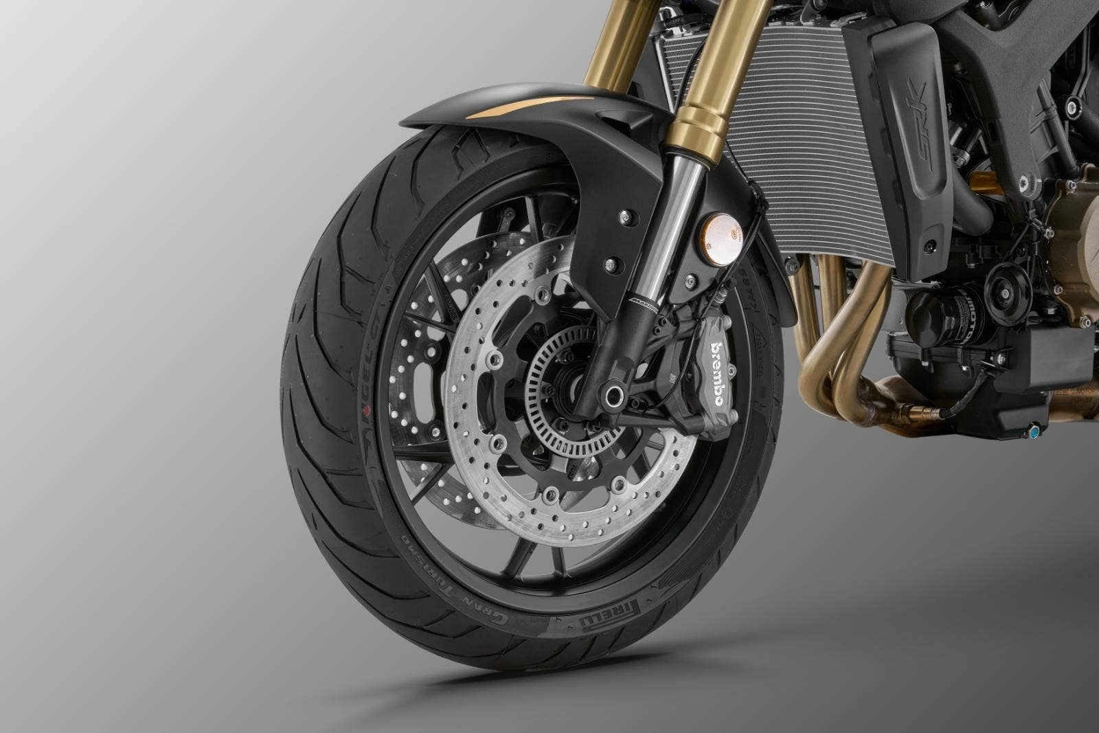 SRK 800 je standardně z výroby obutá na kvalitních pneumatikách Pirelli Angel GT. Tyto pneumatiky oceňují jezdci po celém světě ohledně jejich skvělých vlastností. Tyto sportovně cestovní pneumatiky nabízejí skvělý výkon po celou svou životnost a to jak na suché, tak i mokré vozovce. Špičková koncepce pro sportovní jízdu s DNA značky Pirelli.