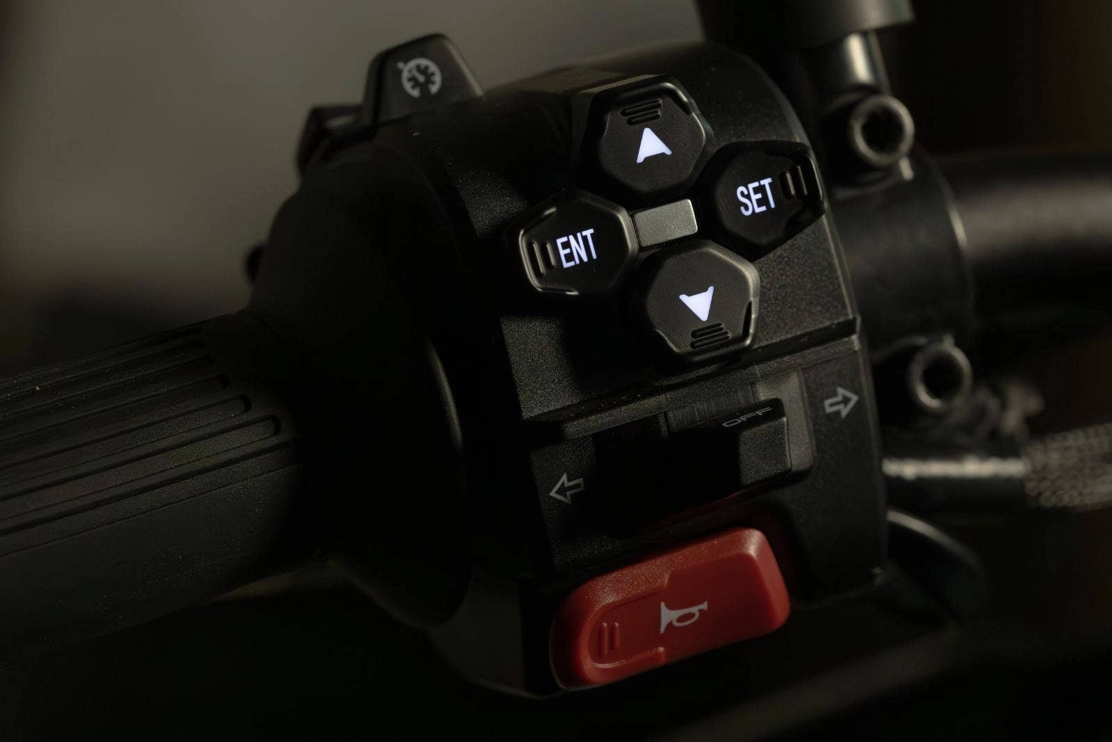 SRK 800 má na rozdíl od většiny konkurence i praktický podsvícený sdružený ovladač na levém řídítku, což je dobré jak pro začátečníky, tak i pro zkušené jezdce. Pomocí těchto osvětlených ovladačů lze snadno ovládat nastavení motocyklu (včetně přístrojového panelu) jednoduše pouhým stisknutím prstu. Máte tak plnou kontrolu nad svým strojem ve dne, ale i při jízdě v temné noci.